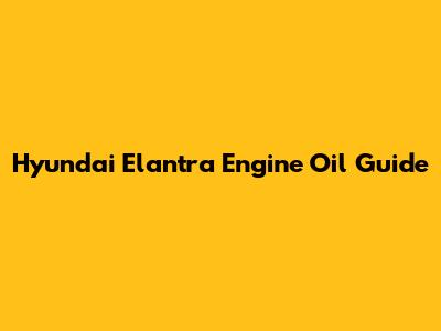 Hyundai Elantra Engine Oil Guide