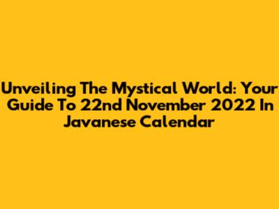 Unveiling The Mystical World: Your Guide To 22nd November 2022 In Javanese Calendar