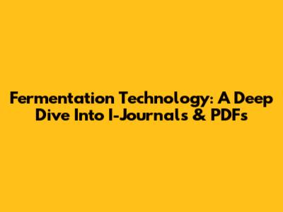 Fermentation Technology: A Deep Dive Into I-Journals & PDFs