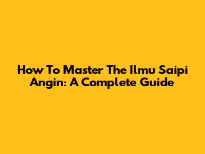How To Master The Ilmu Saipi Angin: A Complete Guide