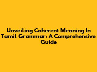 Unveiling Coherent Meaning In Tamil Grammar: A Comprehensive Guide