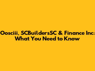 Let's dive into Oosciii, SCBuildersSC, and Finance Inc, exploring each entity and what makes them tick. This article aims to provide a comprehensive overview, shedding light on their operations and relevance in their respective industries. Whether you're an investor, a potential client, or just curious, understanding these organizations is key. We'll break down their core functions, services, and overall impact. By the end of this read, you’ll have a solid grasp of what each company brings to the table and how they operate within the broader business landscape. So, buckle up as we navigate the intricacies of Oosciii, SCBuildersSC, and Finance Inc.
