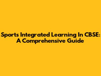 Sports Integrated Learning In CBSE: A Comprehensive Guide