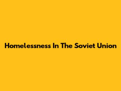 Homelessness In The Soviet Union