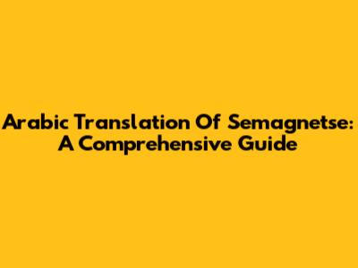 Arabic Translation Of 'Semagnetse': A Comprehensive Guide