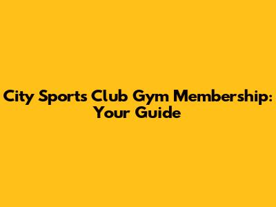 City Sports Club Gym Membership: Your Guide