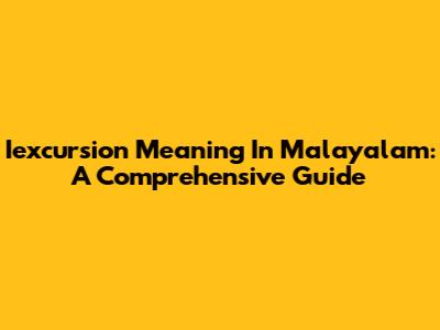 Iexcursion Meaning In Malayalam: A Comprehensive Guide