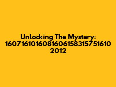 Unlocking The Mystery: 1607161016081606158315751610 2012