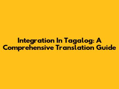 Integration In Tagalog: A Comprehensive Translation Guide