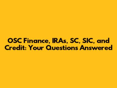 Hey everyone! Let's dive into some common questions about OSC Finance, IRAs (Individual Retirement Accounts), SC (likely referring to South Carolina), SIC (Standard Industrial Classification), and credit! Navigating the financial world can feel like a maze, so I'm here to help break things down in a way that's easy to understand. We'll explore various aspects, from understanding financial products to managing your credit health and the possible connection to OSC.