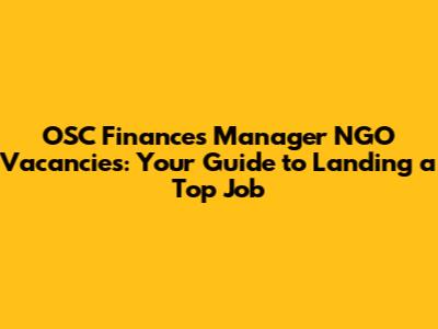 Finding OSC Finances Manager NGO Vacancies