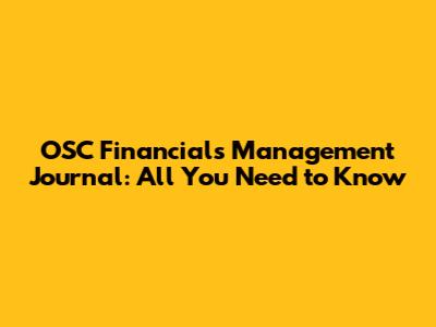 The OSC Financials Management Journal typically covers a wide array of topics, including but not limited to: