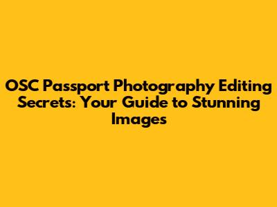 Hey guys! Ever wondered how to transform your OSC Passport photos from good to absolutely amazing? Well, you're in the right place! We're diving deep into the world of OSC Passport photography editing, exploring the secrets to enhancing your images and making them truly stand out. Whether you're a seasoned pro or just starting out, this guide has something for everyone. We'll cover everything from basic adjustments to advanced techniques, all designed to help you unlock the full potential of your OSC Passport photos. Get ready to level up your editing game and create images that grab attention! Let's get started, shall we?