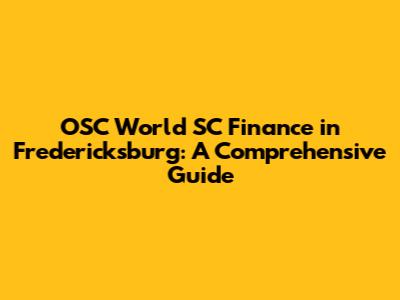 Hey there, finance enthusiasts! Welcome to a deep dive into OSC World SC Finance in Fredericksburg. We're going to explore everything you need to know about this financial service, including what it is, how it works, and why it might be a great option for you. This guide is designed to be your one-stop resource, whether you're a seasoned investor or just starting out. We'll break down the complexities and make the information super accessible. So, grab a coffee, get comfy, and let's unravel the world of OSC World SC Finance together!