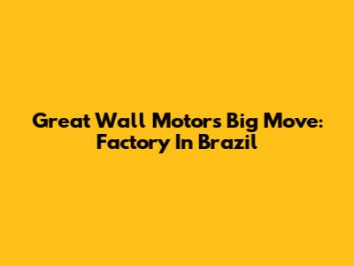 Great Wall Motor's Big Move: Factory In Brazil
