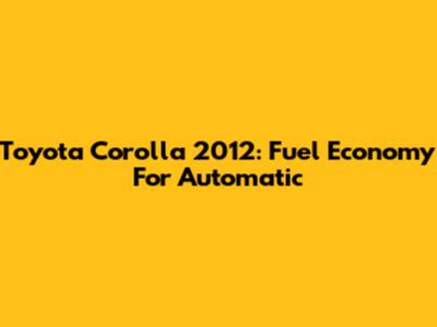 Toyota Corolla 2012: Fuel Economy For Automatic