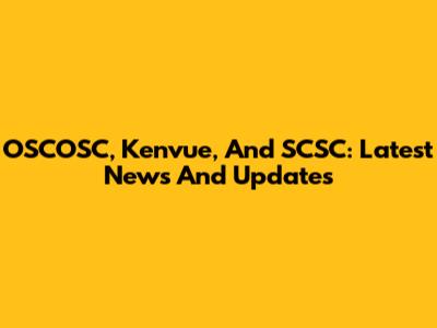 OSCOSC, Kenvue, And SCSC: Latest News And Updates