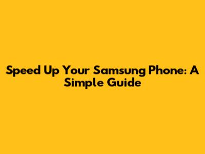Speed Up Your Samsung Phone: A Simple Guide