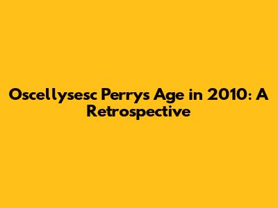 Hey guys! Let's dive into a little bit of a throwback and figure out how old Oscellysesc Perry was back in 2010. It's kinda fun to look back at the past, right? Especially when we're talking about someone's age! We're going to explore the details to understand Oscellysesc Perry's age during that year. This is not just a number; it's a snapshot in time, a piece of information that helps us connect with a person's journey and the events that shaped their life. Knowing someone's age in a specific year helps put everything in perspective. So, buckle up, and let's go on a quick journey back to 2010 and find out the age of Oscellysesc Perry.