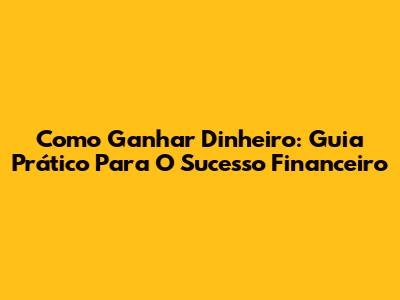 Como Ganhar Dinheiro: Guia Prático Para O Sucesso Financeiro