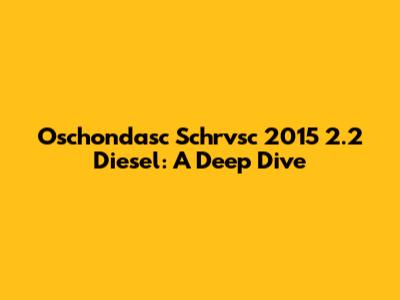 Hey guys! Today, we're diving deep into the Oschondasc Schrvsc 2015 with a 2.2 diesel engine. Whether you're an owner, a mechanic, or just an automotive enthusiast, understanding the ins and outs of this particular model and engine type can be incredibly valuable. We'll cover performance, common issues, maintenance tips, and overall reliability. So, buckle up and let’s get started!