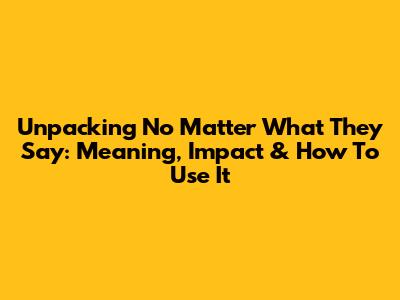 Unpacking 'No Matter What They Say': Meaning, Impact & How To Use It