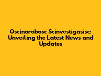 Recent Developments: What's New in Oscinorobosc Scinvestigasisc?
