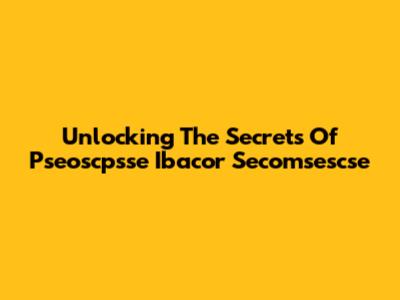 Unlocking The Secrets Of Pseoscpsse Ibacor Secomsescse