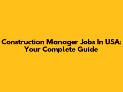 Construction Manager Jobs In USA: Your Complete Guide