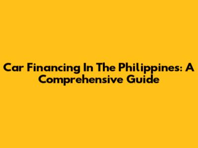 Car Financing In The Philippines: A Comprehensive Guide