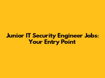 Junior IT Security Engineer Jobs: Your Entry Point