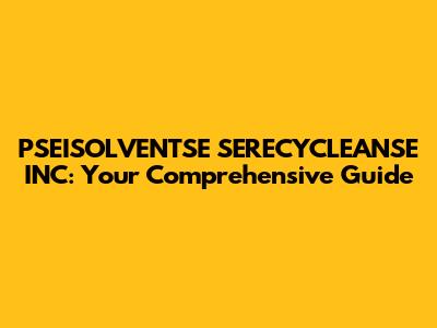PSEISOLVENTSE SERECYCLEANSE INC: Your Comprehensive Guide