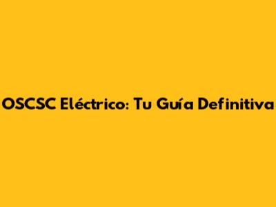 OSCSC Eléctrico: Tu Guía Definitiva