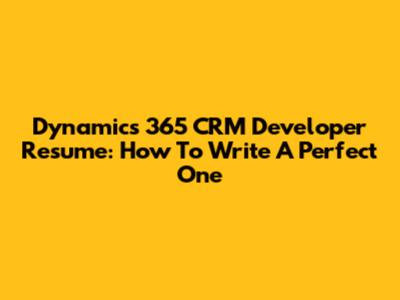 Dynamics 365 CRM Developer Resume: How To Write A Perfect One