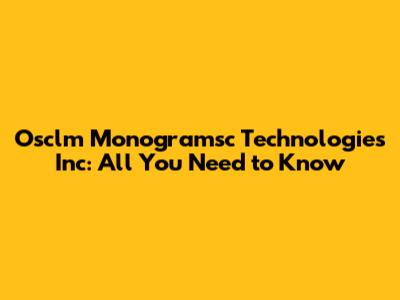What is Osclm Monogramsc Technologies Inc.?