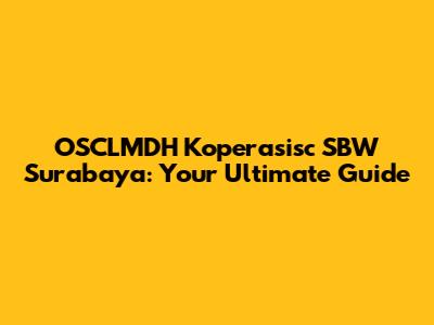 OSCLMDH Koperasisc SBW Surabaya: Your Ultimate Guide