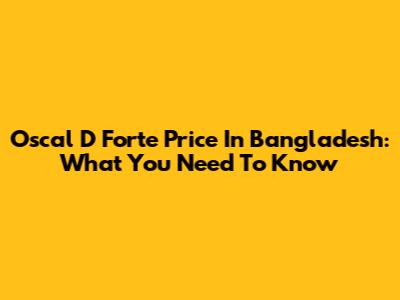 Oscal D Forte Price In Bangladesh: What You Need To Know