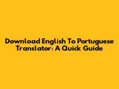 Download English To Portuguese Translator: A Quick Guide