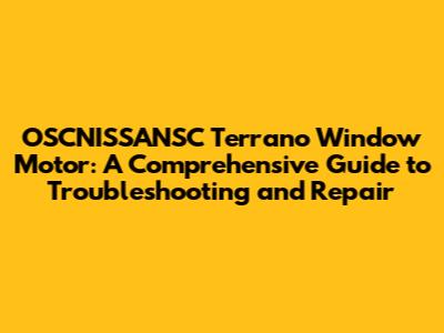 Understanding Your OSCNISSANSC Terrano Window Motor