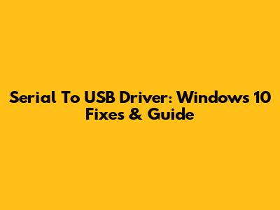 Serial To USB Driver: Windows 10 Fixes & Guide