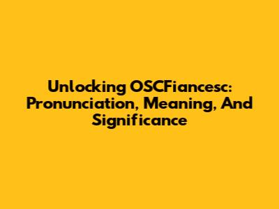 Unlocking OSCFiancesc: Pronunciation, Meaning, And Significance