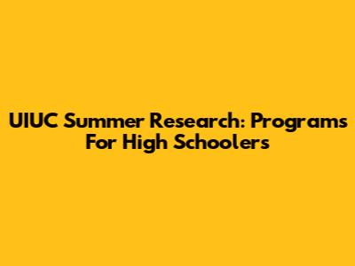 UIUC Summer Research: Programs For High Schoolers
