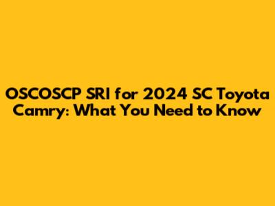 Let's dive into everything you need to know about the OSCOSCP SRI specifically for the 2024 SC Toyota Camry. Whether you're a car enthusiast, a new owner, or just curious, this article breaks down what this means for your ride. We'll cover what OSCOSCP stands for, what the SRI is, and why it matters for your 2024 SC Camry. So buckle up, and let's get started!