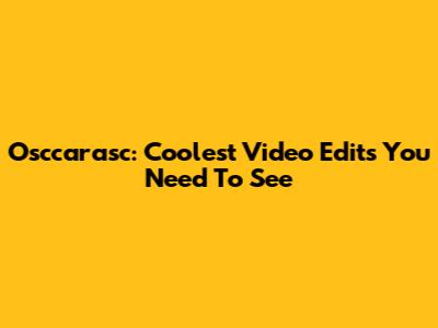 Osccarasc: Coolest Video Edits You Need To See