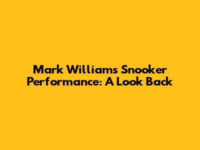 Mark Williams' Snooker Performance: A Look Back