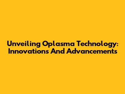 Unveiling Oplasma Technology: Innovations And Advancements