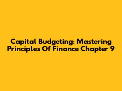 Capital Budgeting: Mastering Principles Of Finance Chapter 9