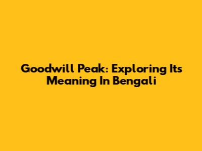 Goodwill Peak: Exploring Its Meaning In Bengali