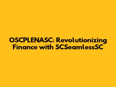 The Future of Finance with OSCPLENASC and SCSeamlessSC