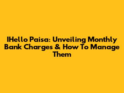 IHello Paisa: Unveiling Monthly Bank Charges & How To Manage Them
